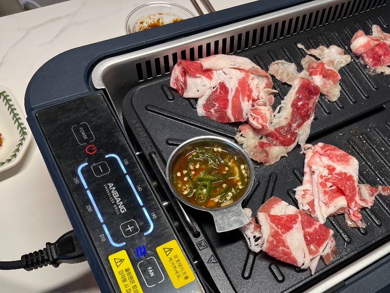 그런데 제 기준 큰 단점은 불빛이 너무 빨개서 고기가 제대로 익고 있는지 확인이 어렵고 빨간 불빛이 눈이 어지러워요... 그래서 한국 입국할 때 지인에게 물려드리고 입국했답니다.