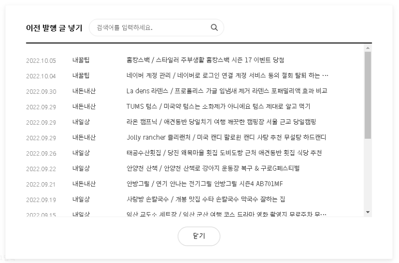 2. 삽입하고자 하는 이전 발행 글을 선택 클릭
