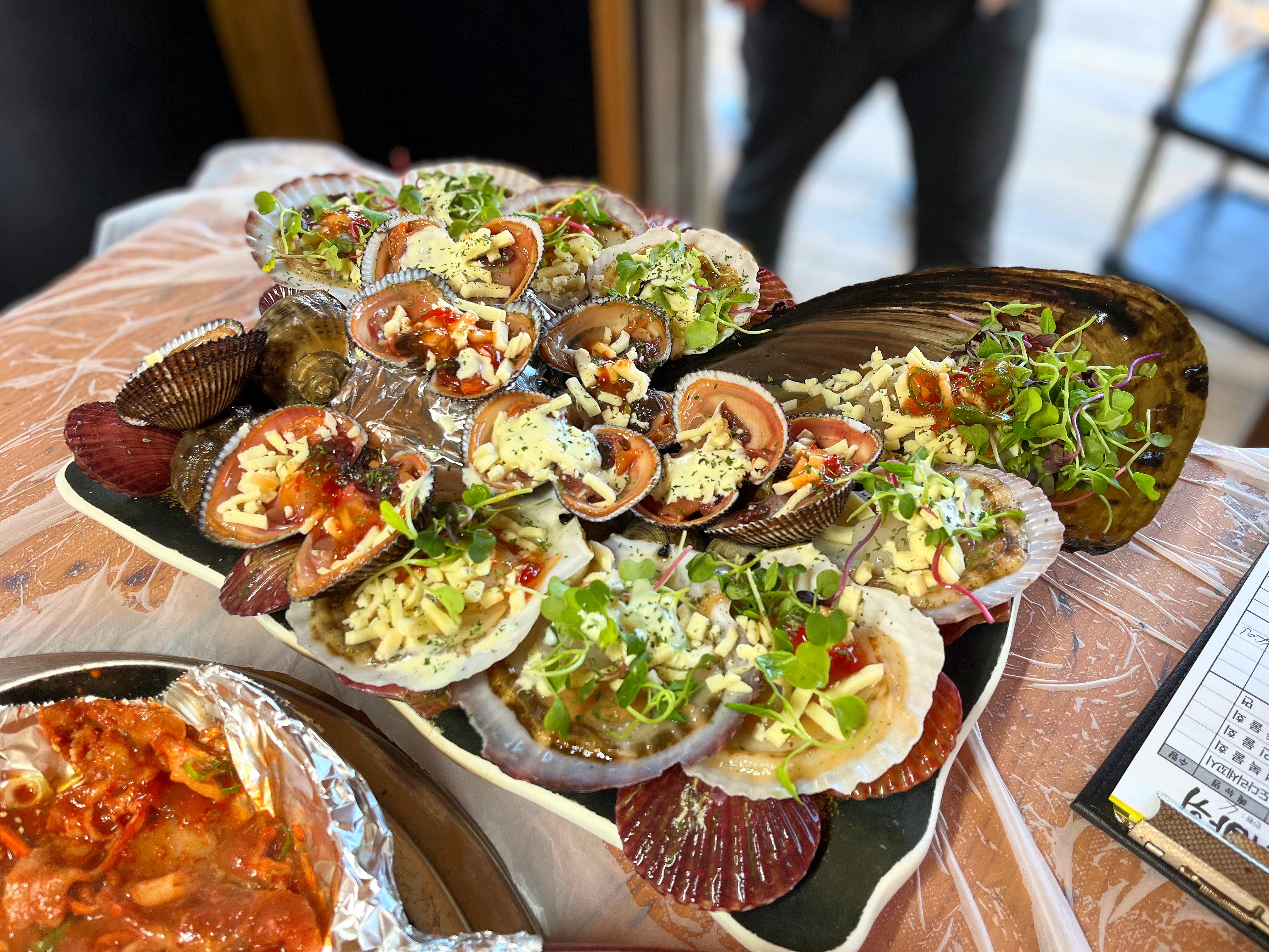 키조개, 가리비, 소라, 석화 등등 골고루 세팅됐고 굽는 방법 먹는 방법까지 친절하게 설명해주셨습니다.
