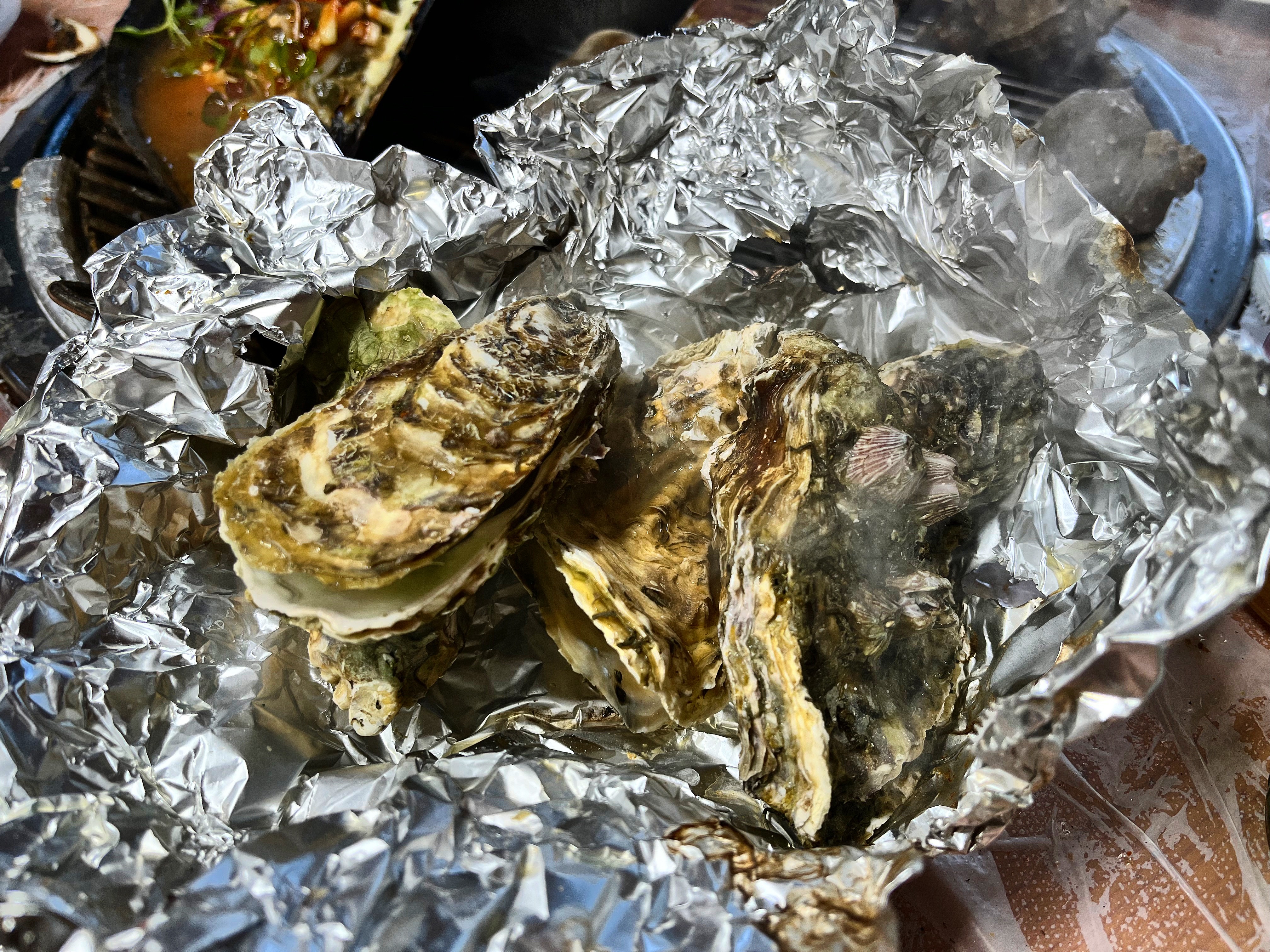포일에 쌓여있는 건 석화예요.