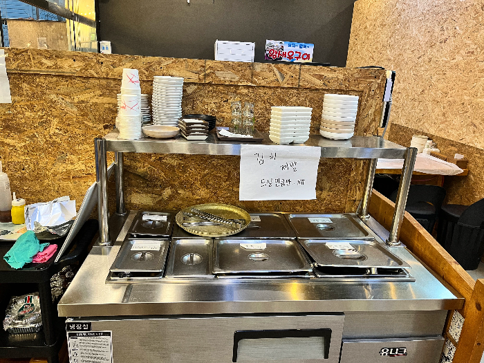 매장 입구에 셀프바가 있는데 추가 반찬은 이쪽에서 셀프로 이용하시면 됩니다.