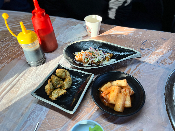 8인까지 식사 가능한 2동 방을 배정받아서 입장했습니다. 사장님이 직접 지으셨다는데 안에 에어컨 온풍기 환풍기까지 설치되어있고 문도 열고 닫을 수 있어요. 조개구이 먹을때 연기 하나도 신경 안쓰고 잘먹었어요 환기 엄청 잘돼요.
